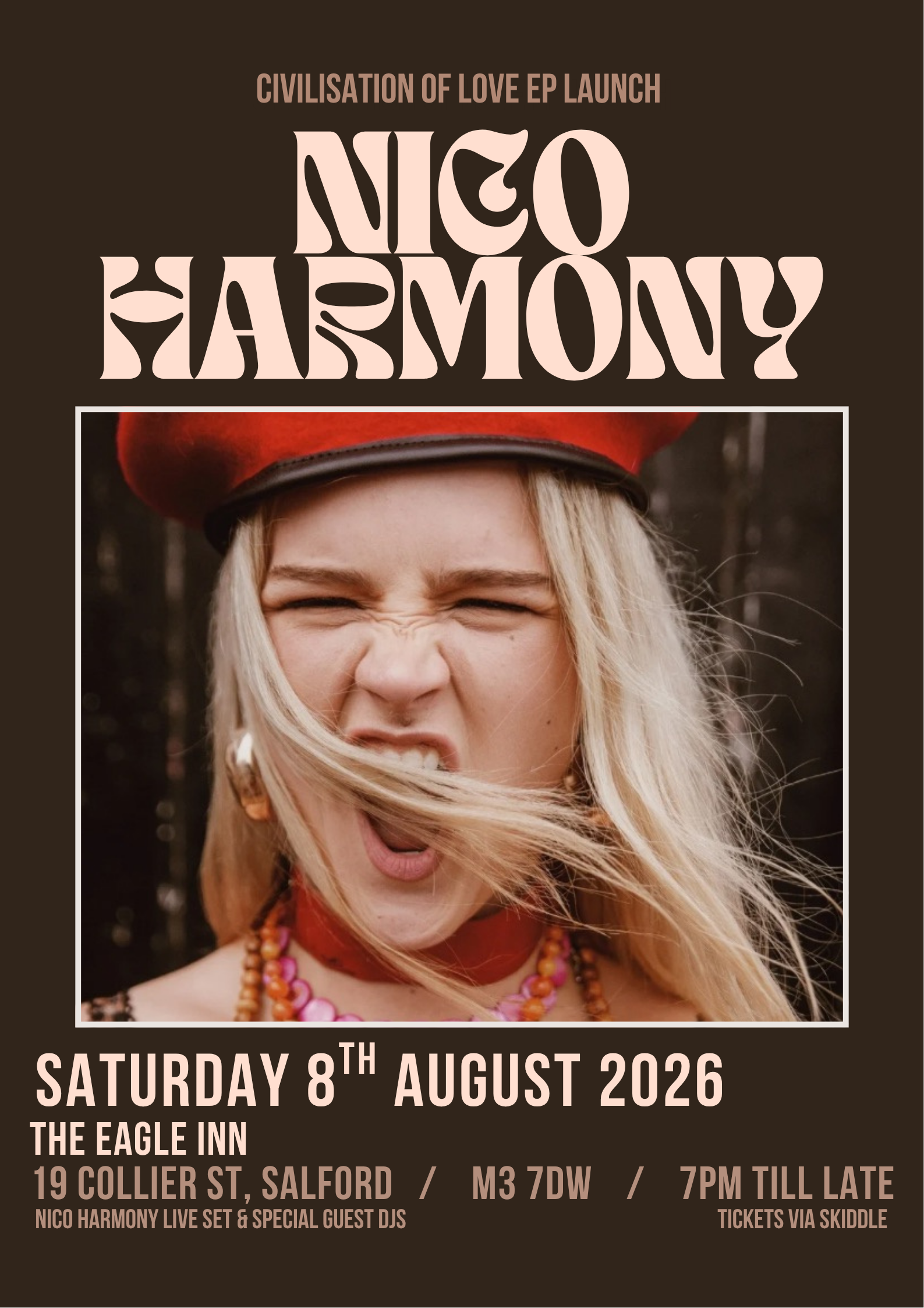 Join Nico Harmony at the iconic Eagle Inn for the official launch of the ‘Civilisation of Love’ EP.
