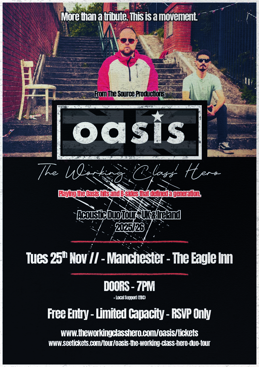 In 2025, it begins with Oasis – The Working Class Hero: Duo Tour 2025/26 – a stripped-back tour in grassroots venues across the UK and Ireland.